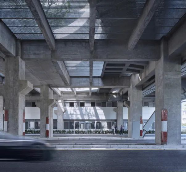 新辟的安浦路则穿越了建筑的第一层。安浦路虽是车行道,但相关部门对车速有一定限制,道路的慢速定位与建筑的休闲功能相一致。