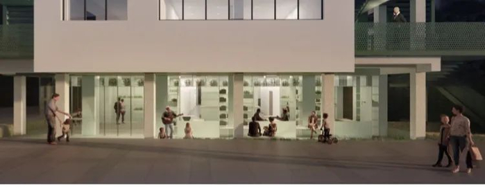 开放,也是“业主”更新这幢小楼的初衷。街道的社区综合公共服务中心,开设的目的就是为老百姓服务,因此正要吸引与集聚人气。一个开放的公共露台刚好可以达到这样的效果。街道社区综合公共服务中心的设计中,还开放了底楼的空间,向内退借数米,打造了上海老弄堂“骑楼”空间。未来,人们可以坐在“骑楼”下,喝喝咖啡、聊聊天,看看河景,好不惬意。