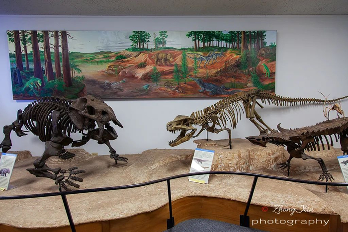 左一就是扁肯氏兽 Placerias hesternus。硅化森林国家公园游客中心的小型博物馆Rainbow Museum里,陈列了很多硅化森林同地层的动物化石;图中这3种看上去像恐龙,其实都不是,它们比多数恐龙要早得多。扁肯氏兽属于兽孔目,和哺乳动物关系更近;中间的是主龙类-伪鳄类下的掠食者后鳄龙 Postosuchus kirkpatricki,最右则是植食性的链鳄 Desmatosuchus | 钟蜀黍