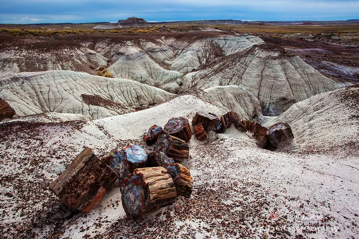 当我驱车开过科罗拉多高原,这里已经满目是岩石和荒漠。如果没有这些硅化木和壮观的沉积层,谁会知道这里曾经是连绵的针叶森林呢?谁会知道一群扁肯氏兽的命运?