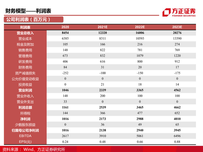 投资评级与估值:我们预计2021-2023年公司营收分别为123.20、160.06、202.76亿元,归母净利润分别为21.38、29.40、39.45亿元,EPS分别为0.48、0.66、0.88元,维持公司“强烈推荐”评级。