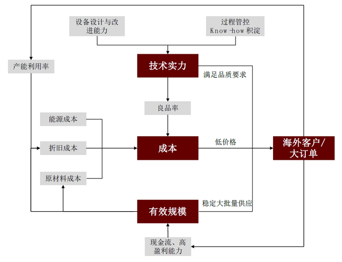 ►持续研发与工艺改进维持成本优势。龙头企业通过改良设备与改进工艺实现持续降本。我们预计龙头企业持续技术研发与工艺改进有望维持与二三线企业及海外企业的成本优势。