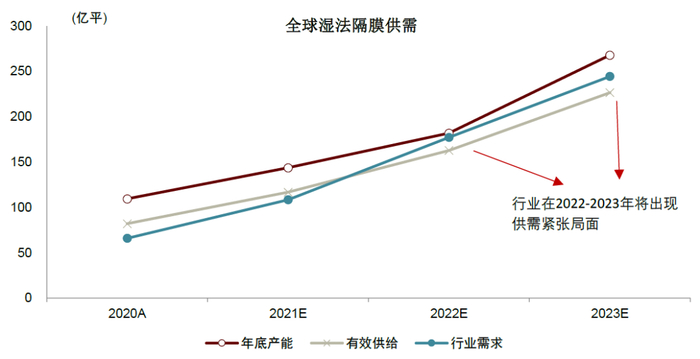 图表:2022-2023年湿法隔膜行业保持供需紧张