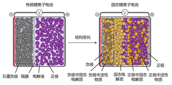 图表:传统锂离子电池与固态电池结构