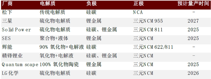 图表:各企业均预计固态电池量产时间在2025年后
