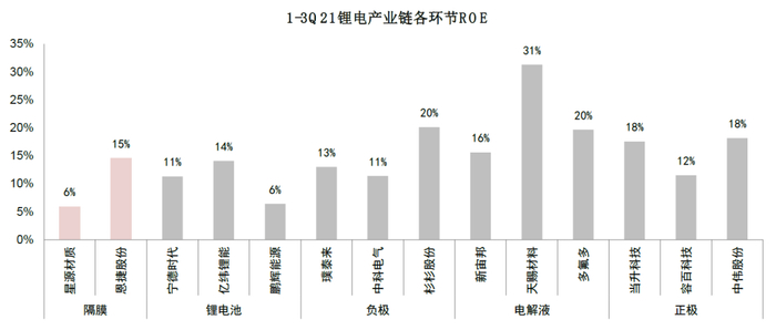 图表:隔膜环节ROE处于行业平均水平