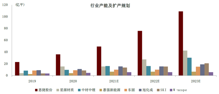 图表:隔膜企业规划产能差异较大