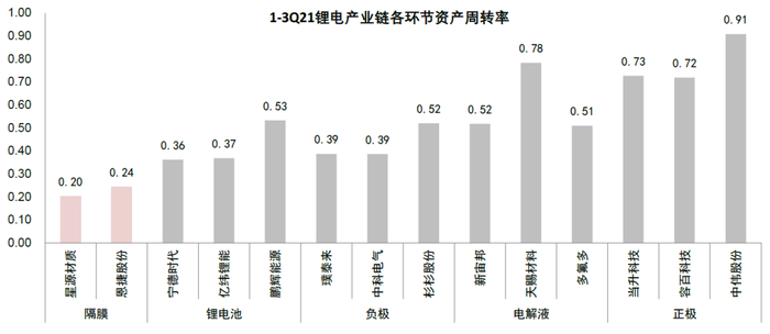 图表:隔膜环节重资产,资产周转率低