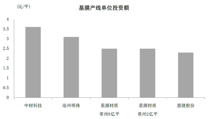 图表:隔膜产线单位投资额存在较大差异