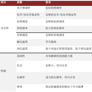 图表:锂电隔膜的性能要求