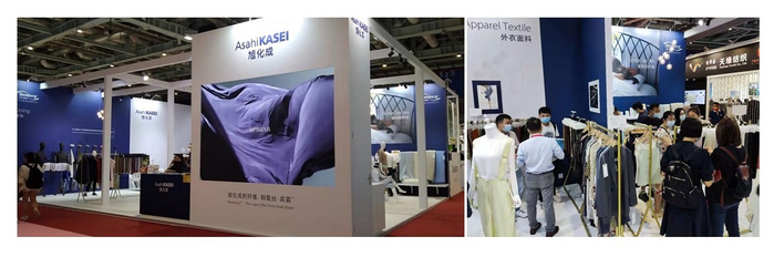 从旭化成展台可看到,无论是国际大牌,还是国内大型服装企业均有在使用宾霸®,且与旭化成的合作已有些年头。宾霸®之所以受到青睐,不仅仅在于其材料的特殊性,还在于它具有超前的可持续性意识,以及符合当下环保议题。