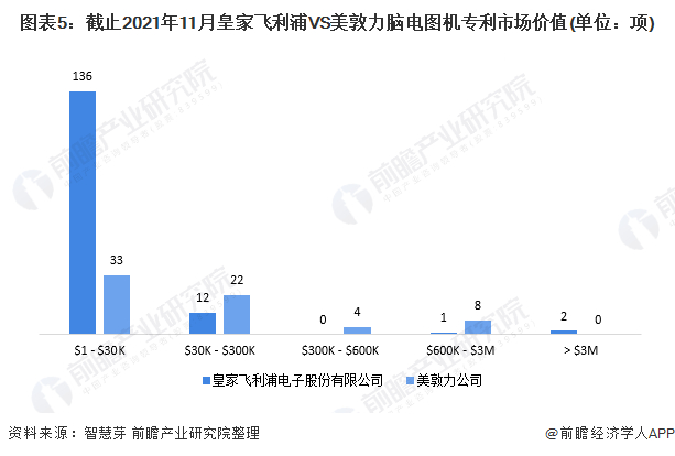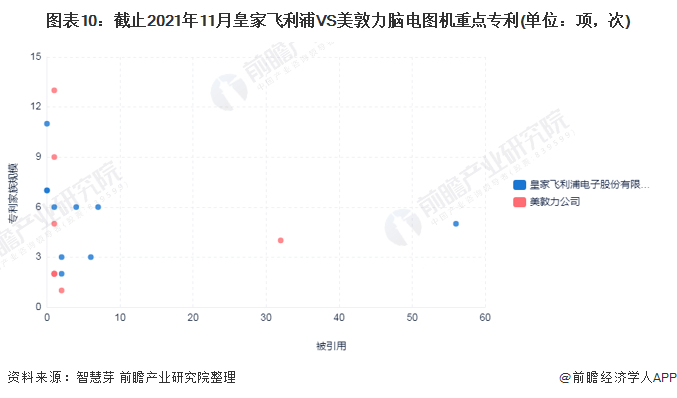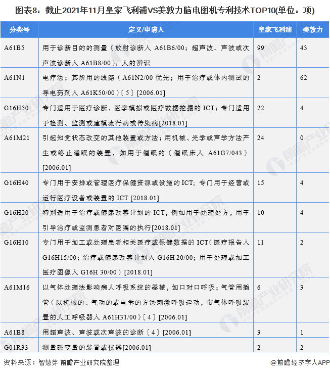 截止到2021年11月,皇家飞利浦脑电图机的专利申请下跌至16项,而美敦力的专利数量下跌至16项。