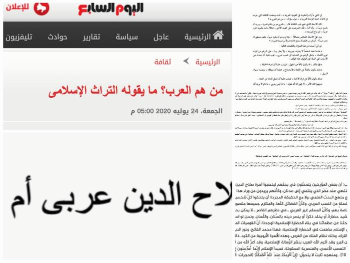 当然,部分阿拉伯民族主义者愿意将历史上的英雄人物当作阿拉伯人。例如,阿联(埃及)总统纳赛尔就在自己的演讲中多次将萨拉丁看作阿拉伯民族反抗欧洲侵略的化身,也将13世纪中期马穆鲁克与蒙古人的战争解读为阿拉伯人的反击。但这样的攀附随即就遭到了批判。著名的阿拉伯史学家曼吉德(صلاح الدين المنجد)在1966年就指责纳赛尔滥用“阿拉伯民族”/“阿拉伯乌玛”(أمة عربية)的概念,他认为历史上抵御十字军和鞑靼人(蒙古人)入侵的并非只有纳赛尔说的“阿拉伯人”,而是广大穆斯林,其中包括“斯拉夫-切尔克斯马穆鲁克、库尔德人、土耳其人、塞尔柱人和阿拉伯人”。换句话说,阿拉伯人只是穆斯林抵御外侮中的一部分。