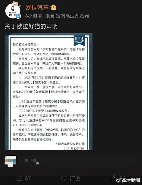 欧拉“芯片门”持续发酵。多位车主质疑欧拉品牌方在销售好猫车型时涉嫌虚假宣传和误导消费者后,12月9日欧拉品牌回应称,对给车主带来的困扰道歉,同时给出解决方案。然而,该方案不但没“灭火”反而再次引发车主不满。有网友称:不给换芯片车机问题得不到解决,仅是送权益的解决方案没有诚意!