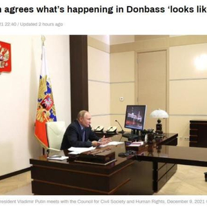 当地时间12月9日,普京参加了俄罗斯公民社会发展与人权委员会召开的一次长时间会议,讨论了从新冠疫苗接种到监狱改革等一系列问题。会上,一名叫基里尔·维欣斯基的记者一度提到乌克兰东部的两个州,称那里说俄语的人口遭受了他所说的“种族灭绝”。