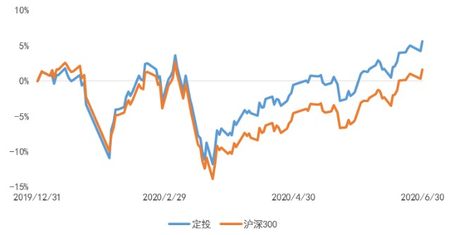 以2019年至2020年为例,可以看出,在上涨市中,定投由于分批买入,投资成本相对较高,表现不如一次性买入。