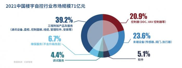 近日,由美控智慧建筑联合亿欧智库共同发布的《中国楼宇自控白皮书》显示,2021年中国楼宇智能化市场产值约达为7238.2亿元,其中楼宇自控行业市场规模为71亿元左右。