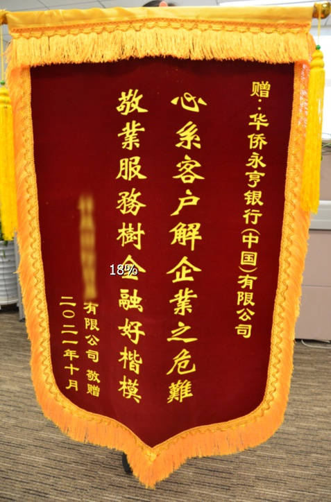 该客户在经历了漫长且艰难的款项追讨过程后表示,正是因为华侨永亨银行(中国)第一时间采取了快速的应对措施,向收款行发送报文正式要求止付,为客户争取到了宝贵的时间。在资金冻结的前提下,客户才能通过多种渠道的尝试,最终追回了款项。事后,客户亲自从北京飞到上海,向华侨永亨银行(中国)表示感谢,并赠予锦旗:“心系客户解企业之危难、敬业服务树金融好楷模”。