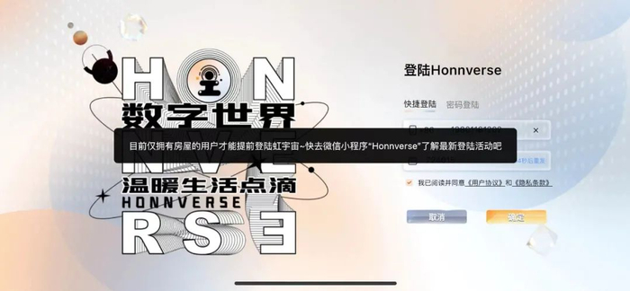《国际金融报》记者在尝试注册虹宇宙账号时发现,没有虚拟房产则无法登陆虹宇宙。据了解,目前该游戏还处于内测阶段,只有拥有房屋的用户才可登录Honnverse APP,其他用户将在Honnverse正式开放后才可登陆。