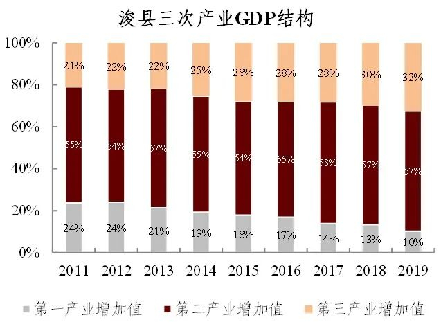 图表: 浚县产业结构处于工业化转型阶段,第一产业GDP占比持续下降