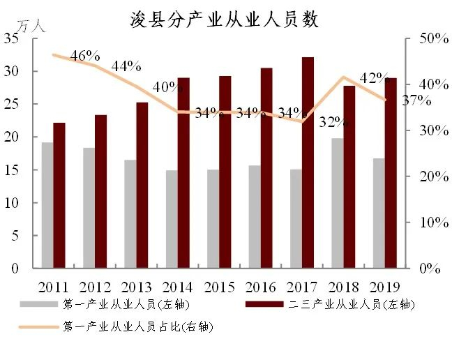 图表: 浚县第一产业就业人员占比较高,农业现代化过程中将释放闲置农业劳动力