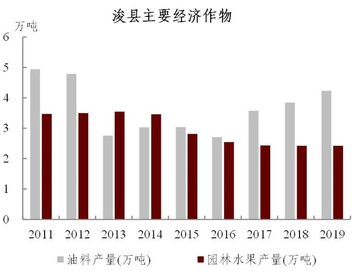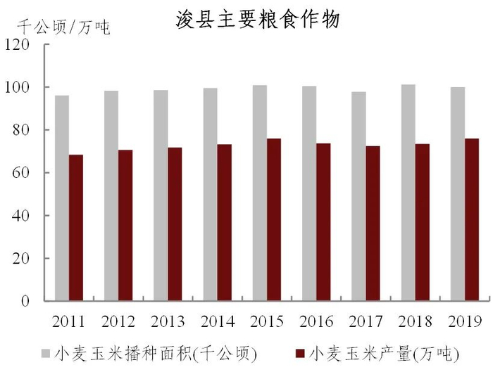 浚县地形以平原为主,分布有淇河平原、卫河平原和黄河故道平原,占全县土地总面积的84.6%2。得益于地势平坦、土壤肥沃,浚县自古以来就是产粮大县,享有“黎阳收、顾九州”的美誉。浚县共有耕地108万亩,2020年浚县粮食播种面积180万亩,粮食产量稳定在100万吨以上3,是我国重要的粮食主产区之一,入选国家首批现代农业示范区和整县建制粮食高产创建试点县。浚县粮食作物以小麦、玉米为主,小麦玉米总产量约75万吨。经济作物主要为油料、园林水果、蔬菜等,但经济作物受市场供求影响,产量波动较大。