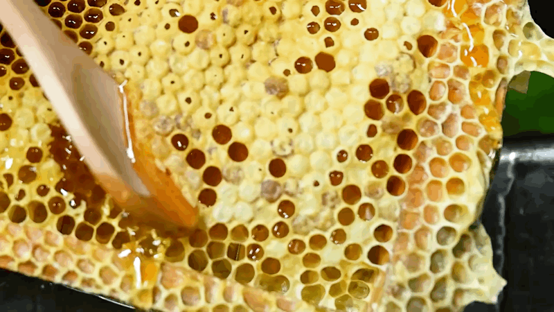 因为蜂巢蜜中还含有蜂巢和蜂蜡,吃巢蜜可以清洁口腔、保护牙齿,这简直就是天然的口香糖。