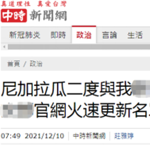 尼加拉瓜与台“断交”,台媒:台外事部门火速更新“邦交国”名单