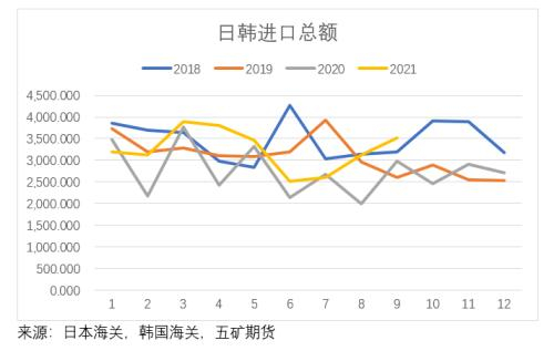 与马来西亚印尼相比,泰国的每月出口一直维持在一个稳定的区间内小幅波动,疫情并没有对泰国的精炼锡生产产生较大的影响,泰国的精炼锡出口一直保持在一个较为稳定的区间内。