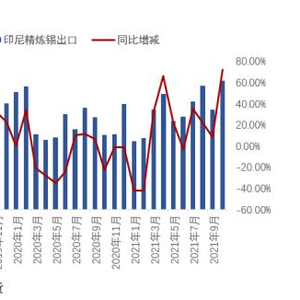 整体而言,全球海外的精炼锡消费虽然受疫情影响有所下降,但基本处在一个稳定区间内波动,受疫情影响的产能也在逐步恢复中,但随着全球疫情的反复,我们很难期待在2022年全球海外精炼锡消费出现大幅度的增长。与之相比,供应端因为受益于锡价走高,尽管目前没有新的大型锡矿投产,但各地矿商都加大了现有锡矿的开采力度,以期从本轮高位的锡价中获得足够的收益。因而我们对明年海外精炼锡供应整体持乐观态度,预计2022年的全球海外精炼锡供应较2021年会有进一步的增长。
