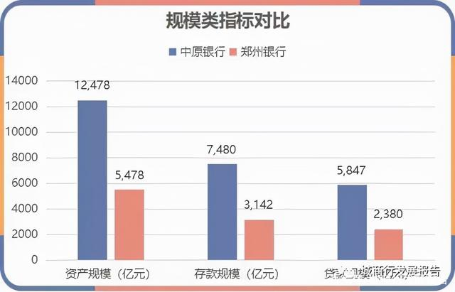 新中原资产规模达到近1.25万亿元,是郑州银行5500亿元的2.2倍;新中原的存款规模达到近7500亿元,是郑州银行3142亿元的2.4倍;新中原的贷款规模为5847亿元,是郑州银行2380亿元的2.3倍。无论是资产、存款还是贷款,新中原整体将超过2个郑州银行的体量。