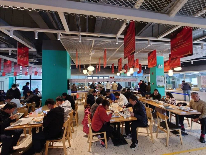 里面已经挤满吃午饭的人,除了住附近的居民及老人,还有上班族、外卖小哥,出租车师傅等,形形色色,算是公办民营的社区食堂。