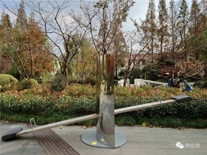 在这又看到了沈烈毅的作品跷跷板系列,上面贴了告示“这是艺术品不能玩,出什么事后果自负”,其实是可以玩的,就是一个免责声明。