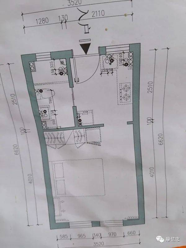 我拍了一张标准户型,它是某个短租平台贴在门上的平面图。
