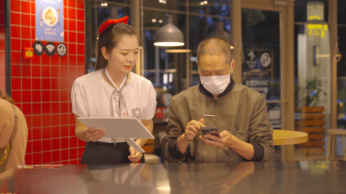 但在最初,一些年纪比较大的顾客会在大小屏幕中显得手足无措。之前,有一位老奶奶在手机的自助点餐功能上摸索良久,徐潇潇看到了,便一步一步教会了她怎样在手机上点餐。后来,老奶奶每次来到餐厅,都会自己带手机来自助点餐,“现在奶奶不仅成资深‘手机党’,还加入了我们店里的社群,经常会在群里问我们有没有什么新品。”