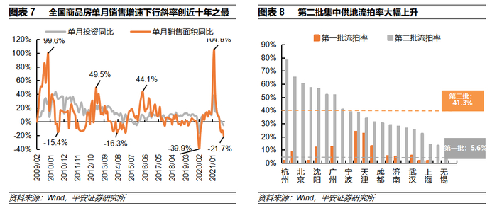 地产方面,上半年销售、投资呈现韧性,首批集中土拍热度高;但随着资金环境收紧、房企信用事件频发,地产基本面显著承压,10月单月销售面积、投资、新开工分别同比降21.7%、5.4%、33.1%,前10月累计同比增7.3%、增7.2%、降7.7%,第二批次集中土拍亦出现大规模流拍、底价成交等情况。
