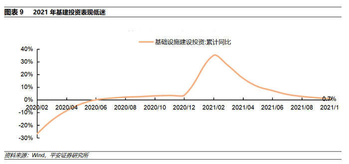 一方面,财政发力下基建需求有望改善。政治局7月30日会议提出“积极的财政政策要提升政策效能”、“加快推进“十四五”规划重大工程项目建设”;10月财政部在新闻发布会表示“2021年新增专项债券额度尽量在11月底前发行完毕,持续发挥专项债券对地方经济社会发展的积极作用”。政治局12月6日会议提出“明年经济工作要稳字当头、稳中求进”、“积极的财政政策要提升效能,更加注重精准、可持续”。经济下行压力加大背景下,国家逆周期调节预期增强,预计2021Q4与2022年基建投资有望提速。