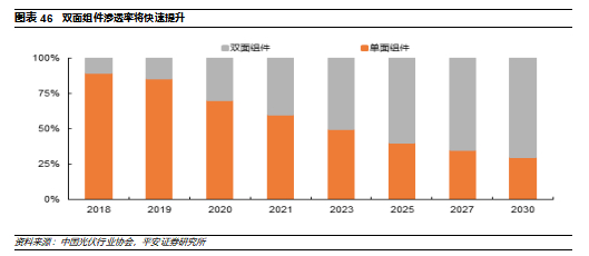 中长期看,“碳中和”下光伏终端需求成长更具确定性,叠加双玻组件渗透率提升,光伏玻璃亦将充分受益。碳中和”大背景下,光伏发电作为能源结构改革和能源替代的重要方向,光伏终端需求持续成长确定性进一步提升。同时,性能更加优越的双玻组件逐步替代单玻光伏组件,亦将带动光伏玻璃需求持续增长。根据中国光伏行业协会的统计,2018年双玻组件的市场占有率仅为10%,2020年的双玻渗透率已上升为29.7%,预计2023年占比将进一步提升至50%。