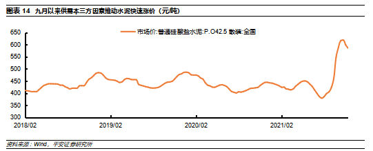 2、原材料、燃料价格继续上涨,制约行业利润率:若后续煤炭、石油化工、天然气等原材料及燃料价格继续上涨,将对冲水泥与防水产品涨价,导致水泥、防水、玻璃企业利润率进一步承压。