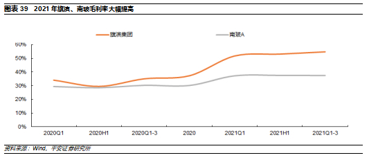 玻璃价格中枢回落,叠加成本端涨价,预计2022年玻璃利润率将有所回落。受玻璃大幅涨价带动,2021年前三季度行业龙头旗滨集团、南玻A销售毛利率分别高达55%、38%,同比提高20pct、7pct。考虑9月以来玻璃价格回落,成本端尽管玻璃企业会通过长协锁定价格,但原材料价格大幅上涨势必导致成本端承压,预计2022年玻璃企业利润率将有所回落。