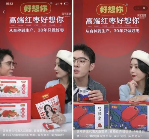 以好想你为例,其通过攻破红枣锁鲜技术壁垒,并利用专利套管去核技术,推出全产业链锁鲜枣、专利去核枣等高品质产品。双十一期间,好想你代言人赵丽颖来到李佳琦直播间,吸引大量粉丝围观,“小鲜肉”锁鲜去核枣、轻颜脆红枣等产品5分钟内一抢而光,销售额近千万元。