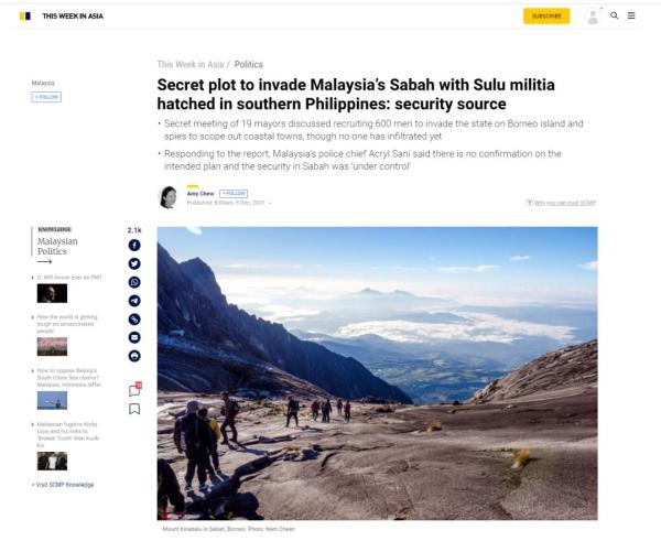 《南华早报》称,马来西亚与菲律宾长期以来就沙巴地区的主权归属问题存在争议。