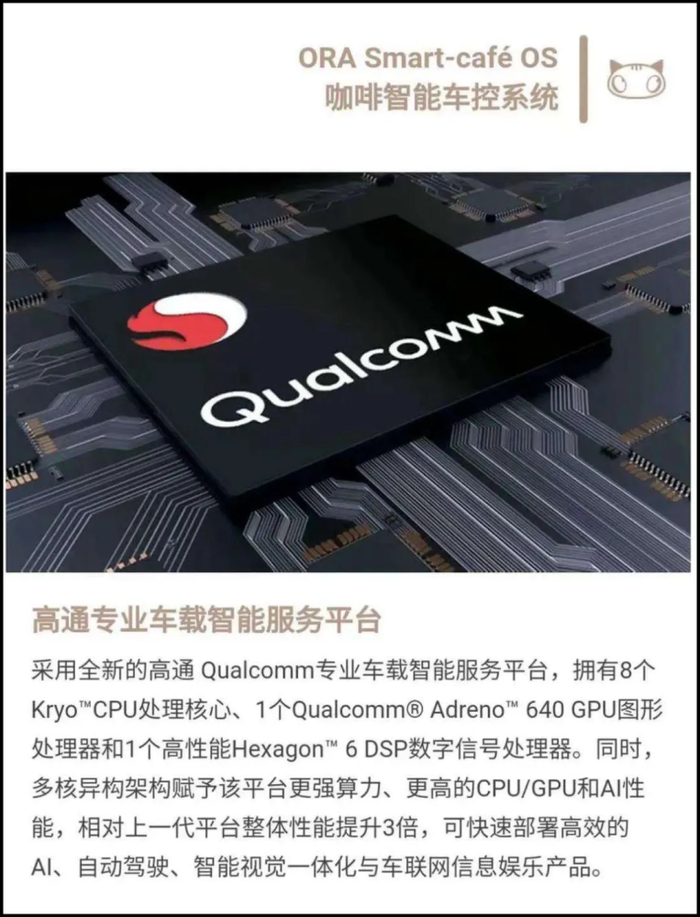 怎么说呢,欧拉确实没明确说猫用的车机芯片就是高通骁龙8155,但是在好猫的宣传中欧拉都已经把8155的信息写上去了,就差报身份证号了......