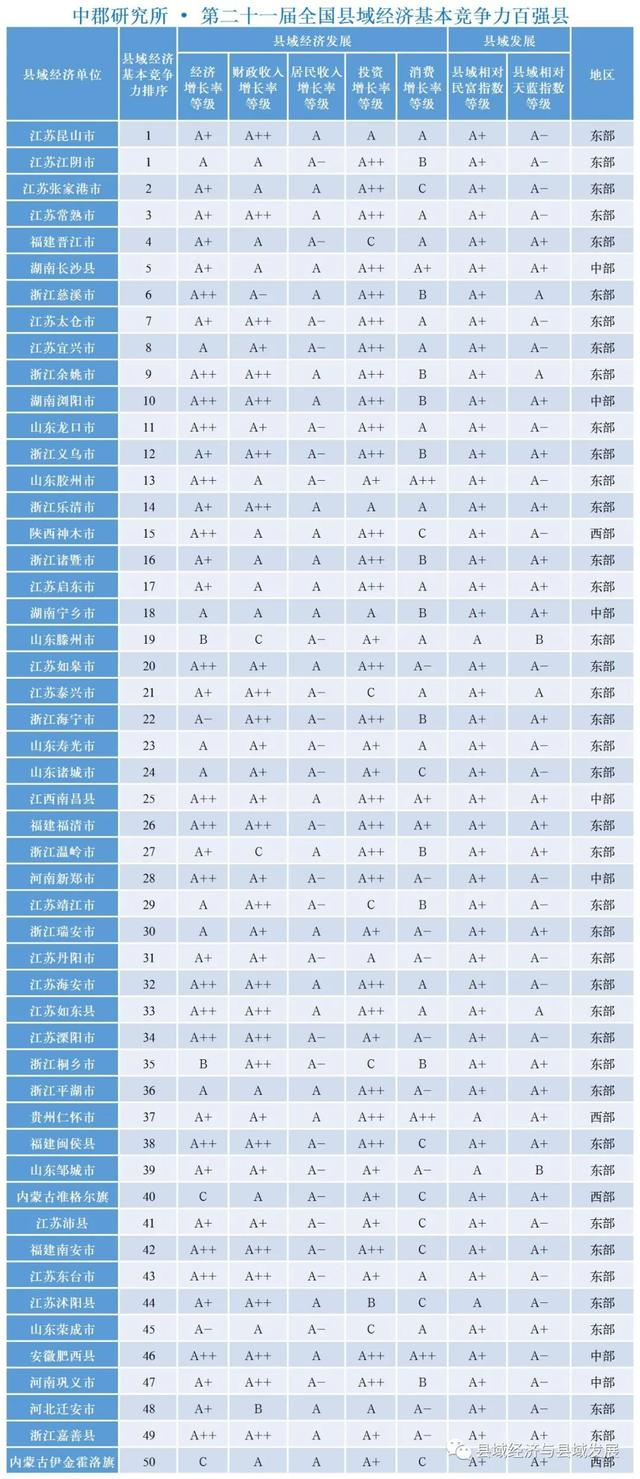 百强榜“前半区”更显江浙县域经济之盛:中郡所榜单前三十位,江浙包揽18个;赛迪百强榜前三十名中,江浙抢下二十席。