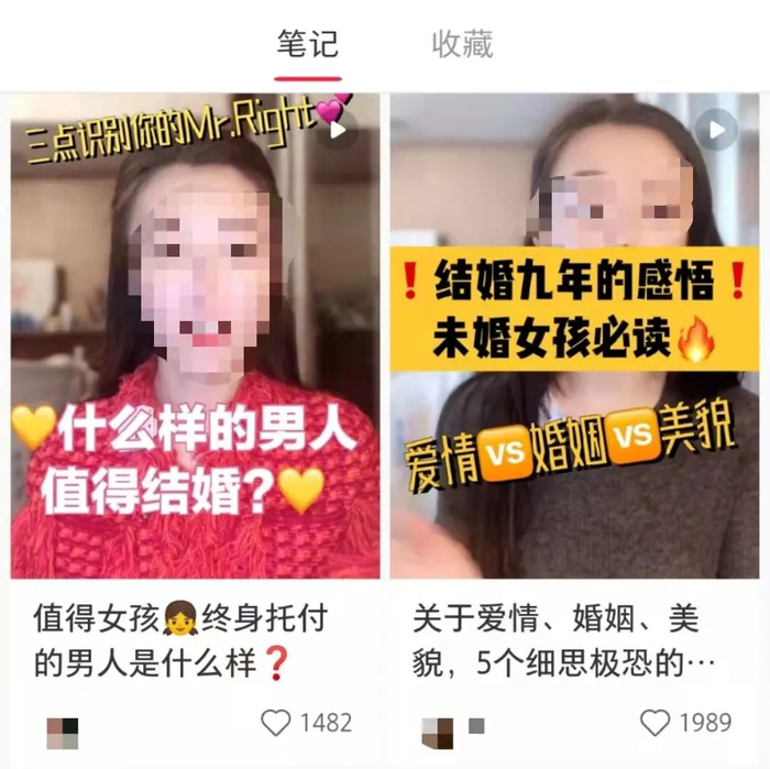 点进这位博主的内容,发现大多数视频的主题都跟恋爱婚姻相关,并且传递了自己婚姻的“成功秘诀”——