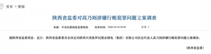 2020年3月10日,据陕西省监委发布消息,称陕西省监察委员会决定对高乃则涉嫌行贿犯罪问题立案调查。