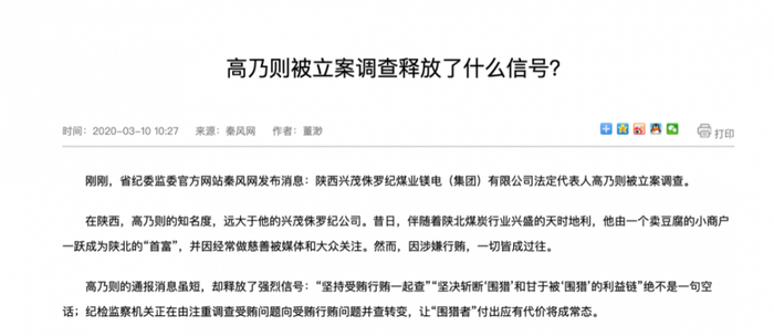紧接着,陕西省纪委监委发布了《高乃则被立案调查释放了什么信号?》一文。