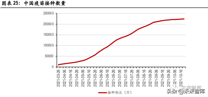 根据卫健委公告,截至 6 月 10 日,完成主要免疫程序的人数约为 2.233 亿人。截至 9 月 6 日,完成主 要免疫程序的人数约为 9.697 亿人。截至 10 月 23 日,完成主要免疫程序人数为 10.676 亿人。由于疫 苗供给紧张,且加强针与主要免疫程序之间的间隔周期可根据实际情况延长,因此,我们假设加强 针的接种时间为免疫程序完成后 6-8 个月。其余假设条件如下:加强针均为 1 剂次;所有已完成主要 免疫程序的公民均进行加强。由此可预测 2022 年 2 月前,加强针市场需求对应 2.233 亿剂次;2022 年 2-5 月,加强针需求约为 7.464 亿剂次;2022 年 5-7 月,加强针需求接近 1 亿剂次。(报告来源:未来智库)