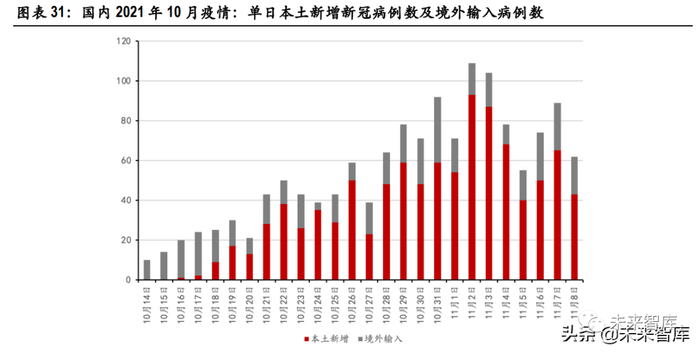 此次疫情中,国内疫情控制表现非常优异。除 2020 年初刚刚爆发时出现了大规模感染,2020 年 3 月 以后,每月新增确诊均在 3000 例以下。对于一个 14 亿人口的大国来说,此次疫情控制充分展现了我 国体制在应对突发性公共事件时的反应力和执行力。然而,紧缩的政策是有代价的,国际交流、国 际贸易等受到冲击,相关经济较为萎靡。限制国际交流短期能够保护国民不受疫情影响,但似乎不 是长久之计。因此,可以预见未来重新开放国门与国际接轨确定性高。届时,一个由高效疫苗筑起 的免疫屏障非常必要。目前来看,初代灭活疫苗或难以胜任这一角色。