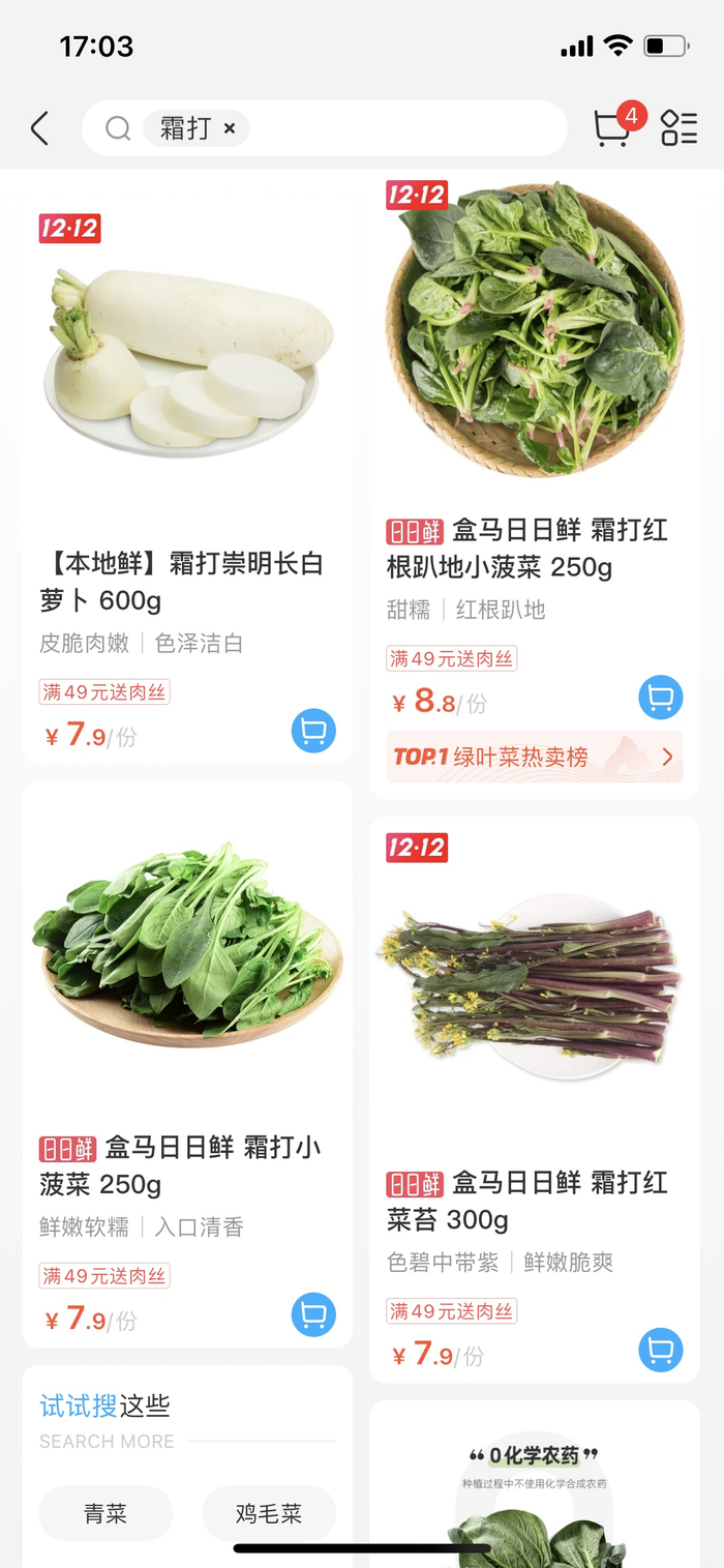 叮咚买菜app上的霜打菜,图片由受访单位提供